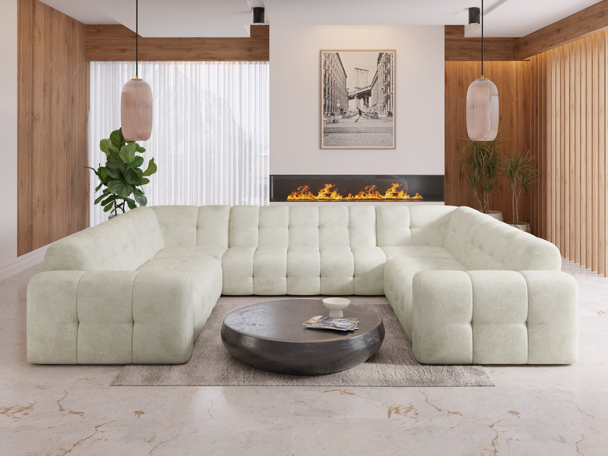 Die Couchgarnitur Flavi vereint modernes Design, höchsten Sitzkomfort und eine präzise Verarbeitung. Dank ihrer großzügigen U-Form wird sie zum Herzstück jedes Wohnzimmers – perfekt zum Entspannen, Kuscheln oder für gesellige Abende.