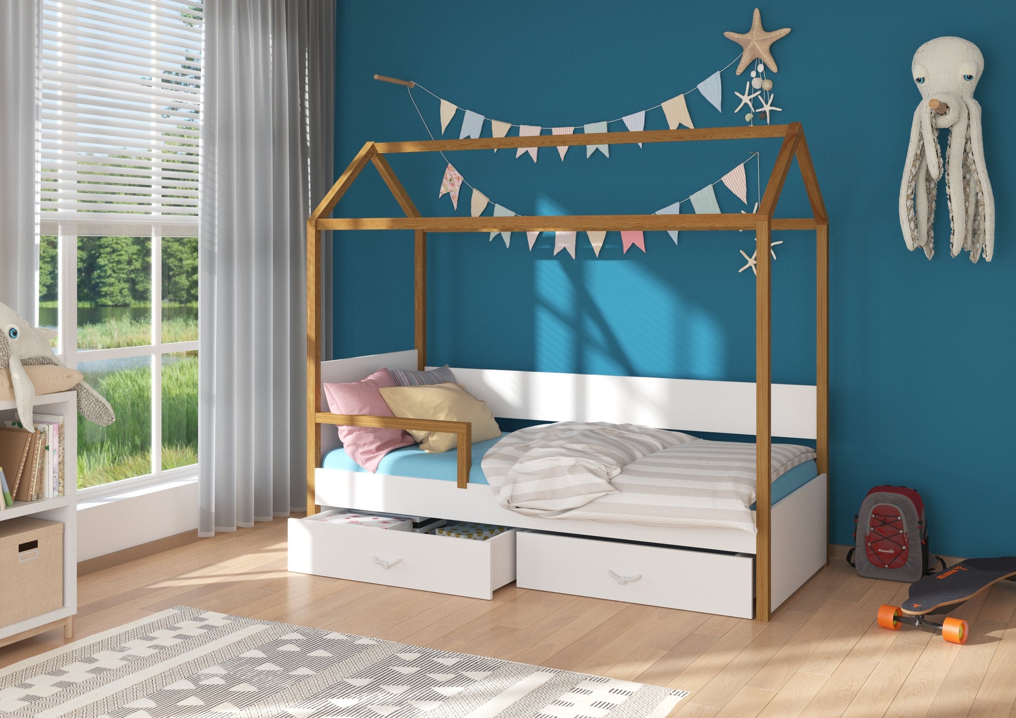 Kinderbett Bett Otello Barrier 208x97x172 cm mit Matratze Kinderzimmerbett.