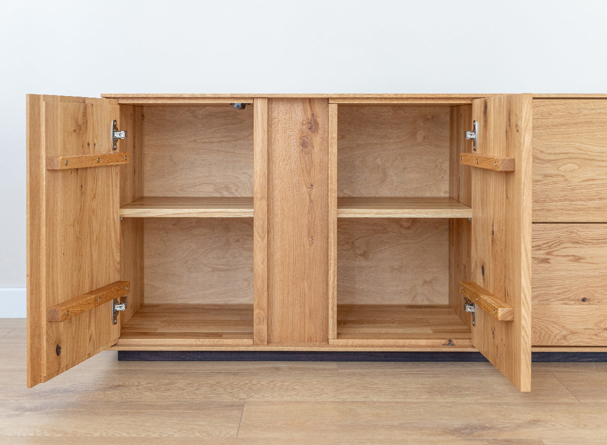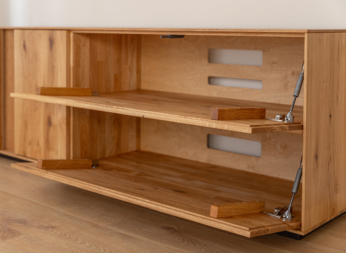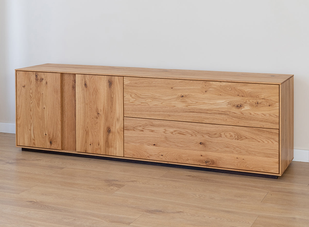 TV-Kommode Collodi aus massiver Wildeiche – Breites Lowboard aus geöltem Eichenholz