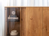 Die markante Maserung und die natürlichen Aststrukturen verleihen jeder Vitrine eine individuelle Optik. Dadurch wird jedes Möbelstück zu einem einzigartigen Unikat.