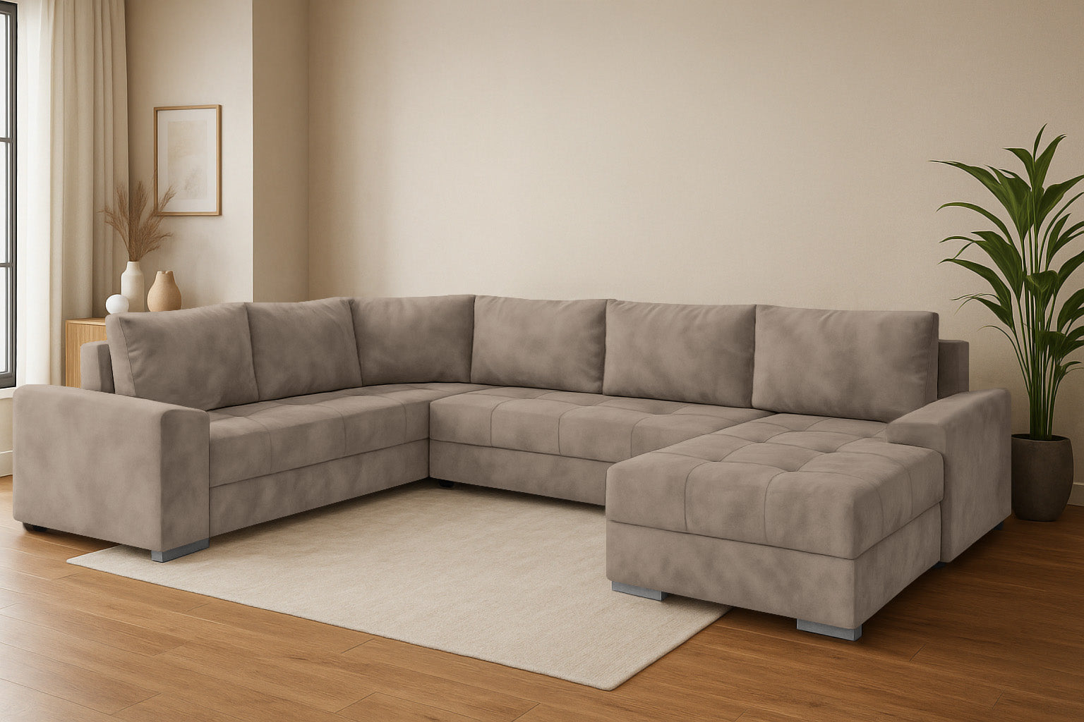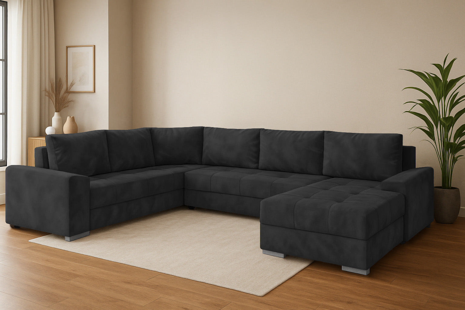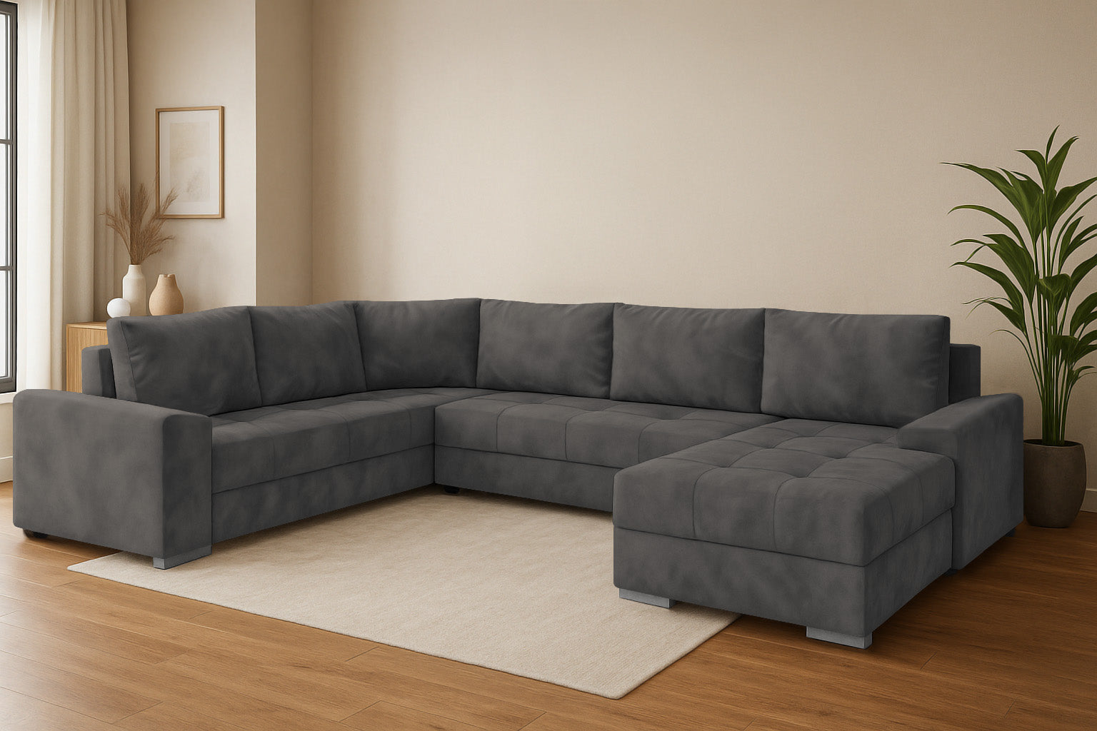 Die Couchgarnitur CHIEF U vereint modernes Design, hohen Komfort und durchdachte Funktionalität. Diese großzügige Wohnlandschaft in U-Form ist der perfekte Mittelpunkt für Ihr Wohnzimmer – ideal für Familien, Gäste oder entspannte Abende.