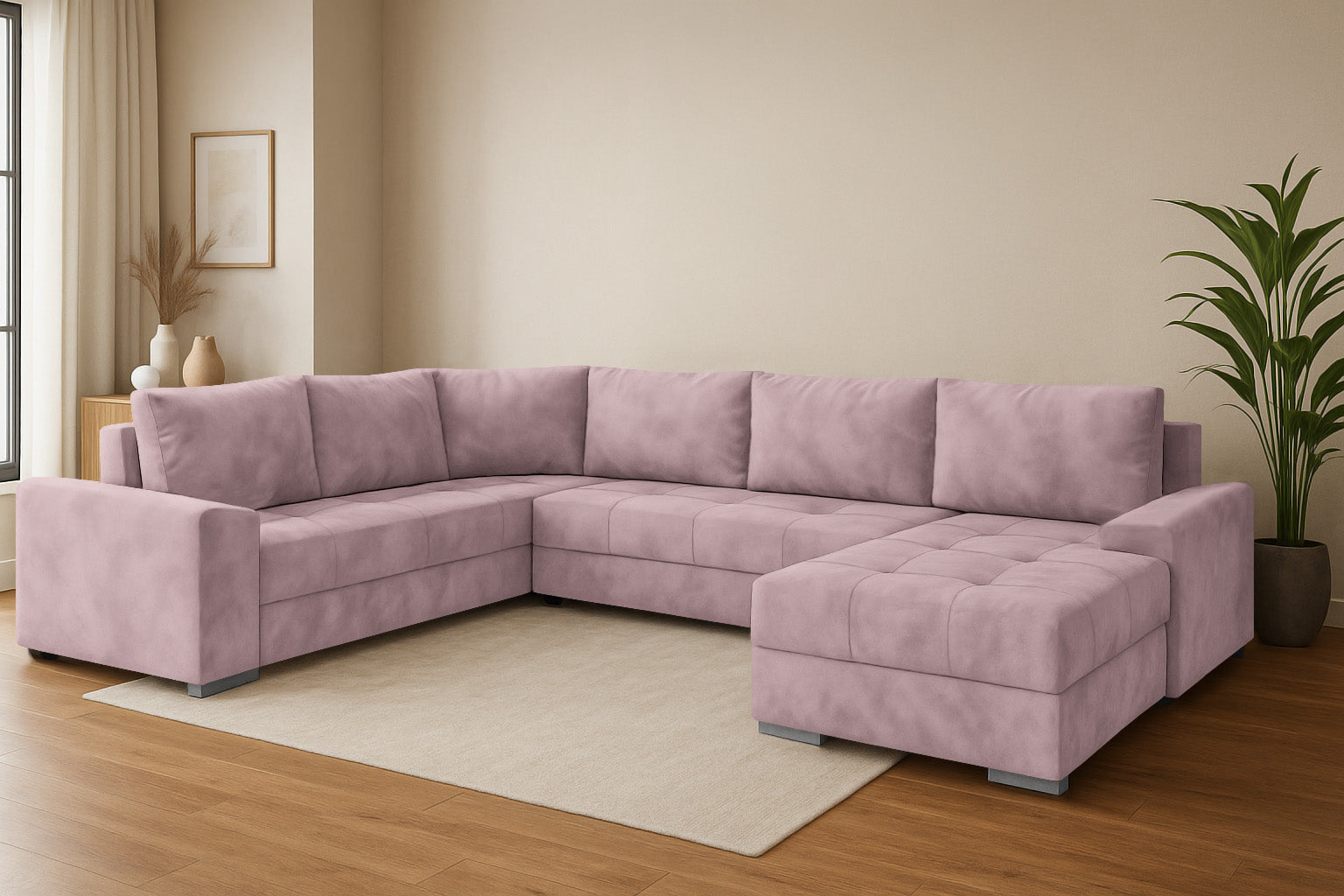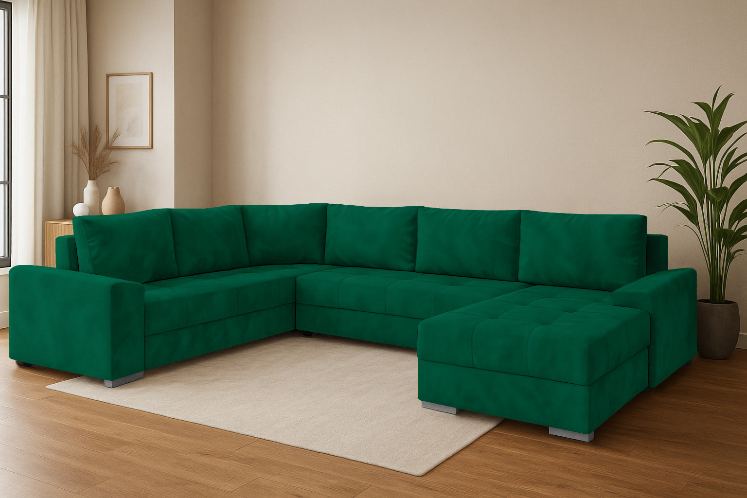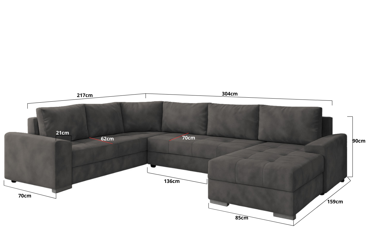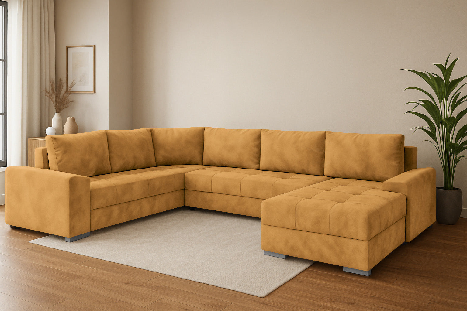 Die Couchgarnitur CHIEF U vereint modernes Design, hohen Komfort und durchdachte Funktionalität. Diese großzügige Wohnlandschaft in U-Form ist der perfekte Mittelpunkt für Ihr Wohnzimmer – ideal für Familien, Gäste oder entspannte Abende.