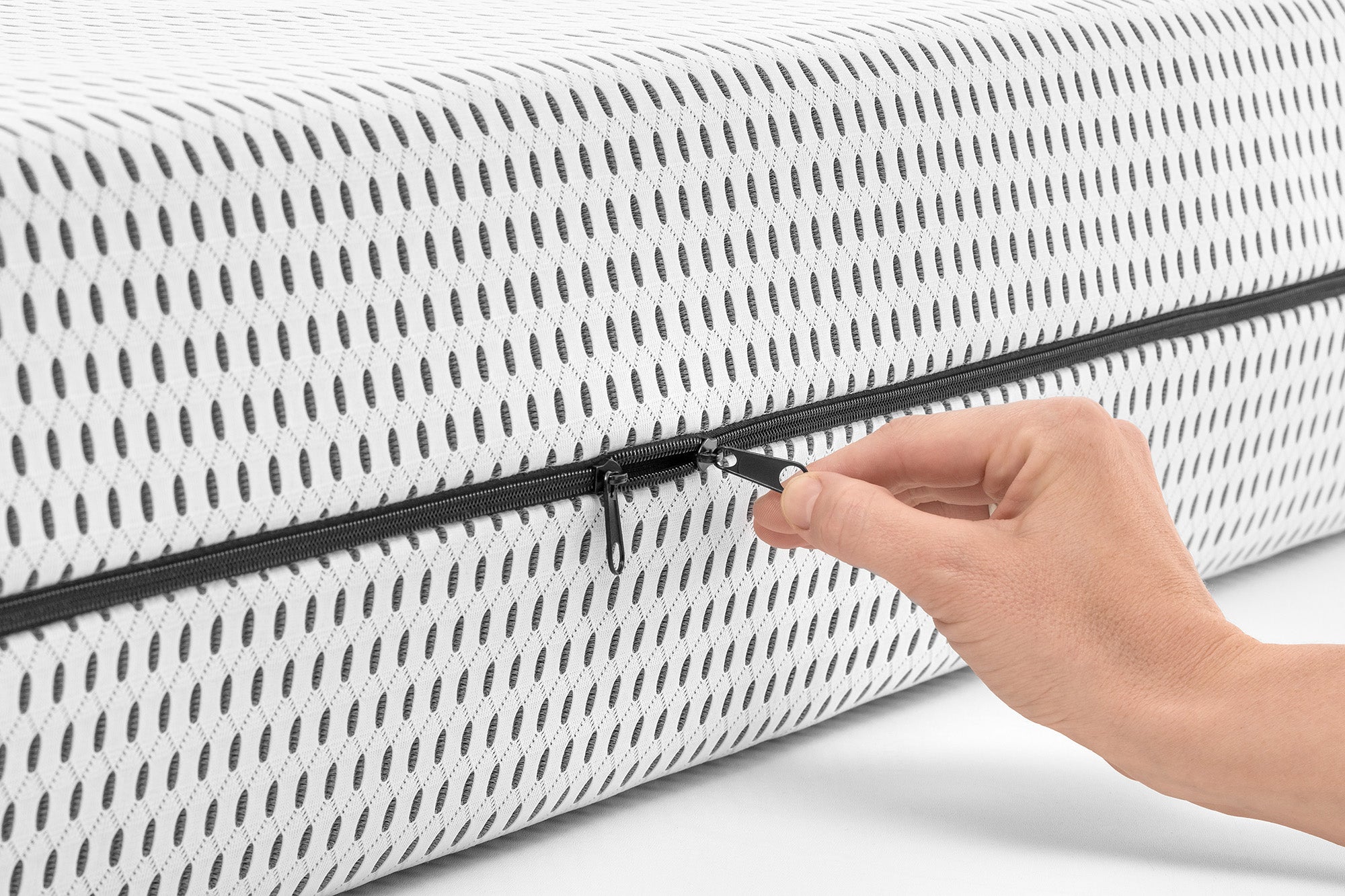 Der exklusive Bezug Space mit atmungsaktiver Netzstruktur gewährleistet eine hervorragende Luftzirkulation und leitet Feuchtigkeit zuverlässig nach außen ab. So entsteht ein angenehm trockenes und hygienisches Schlafklima.