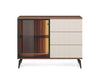 Die Kommode VICI KSZ103 in der eleganten Farbe Nuss Warmia ist die ideale Lösung für stilvollen Stauraum auf kleinerer Fläche. Durch ihr modernes Design mit Glas-Elementen wirkt sie leicht und hochwertig und eignet sich hervorragend für Wohn-, Ess- oder Flurbereiche.