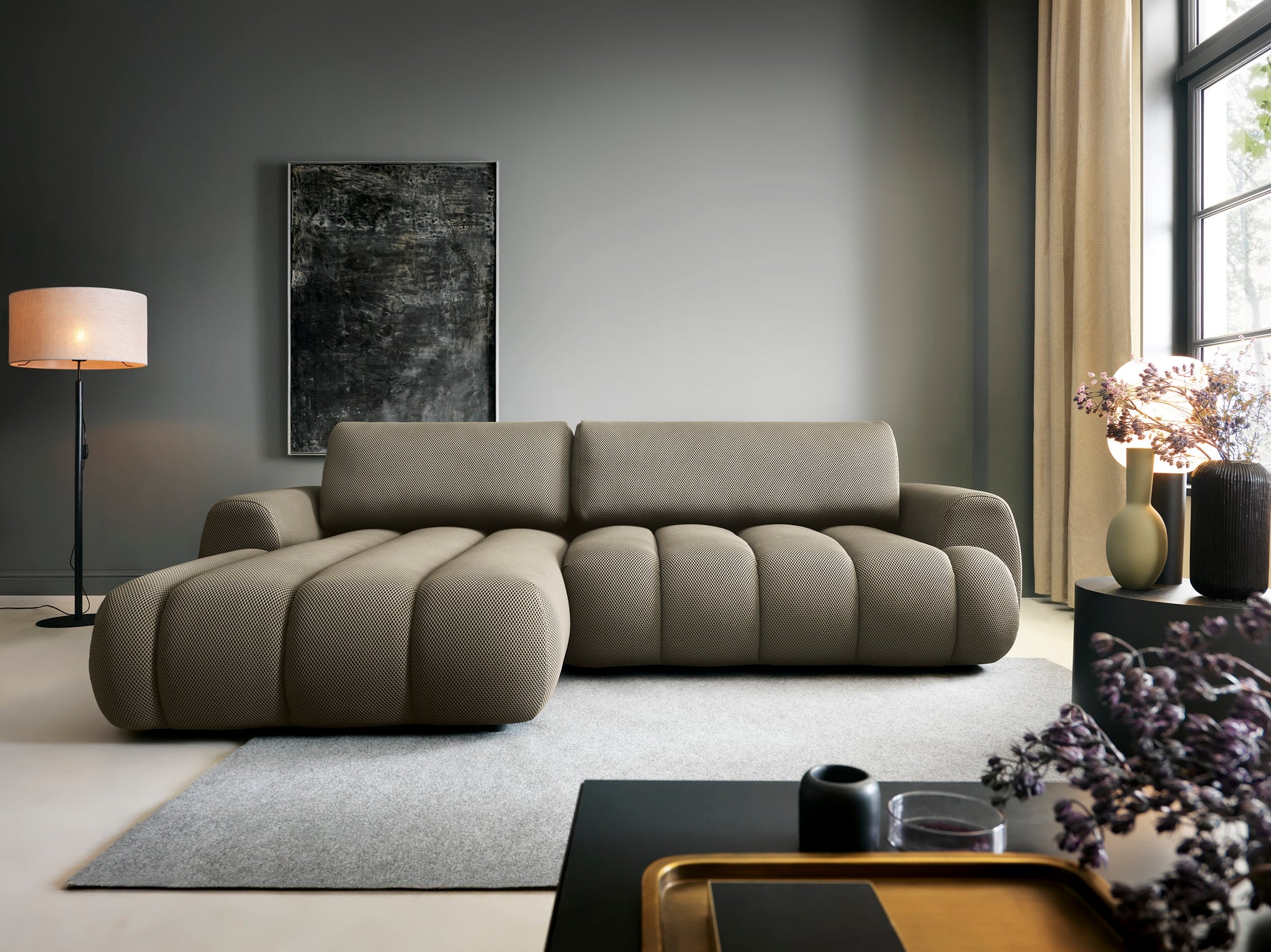 Das Ecksofa PASSO M überzeugt durch sein modernes, weiches Design und außergewöhnlichen Sitzkomfort. Die charakteristischen, abgerundeten Formen und die elegante Polsterung verleihen dem Sofa einen stilvollen und zugleich gemütlichen Charakter – perfekt für moderne Wohnräume.