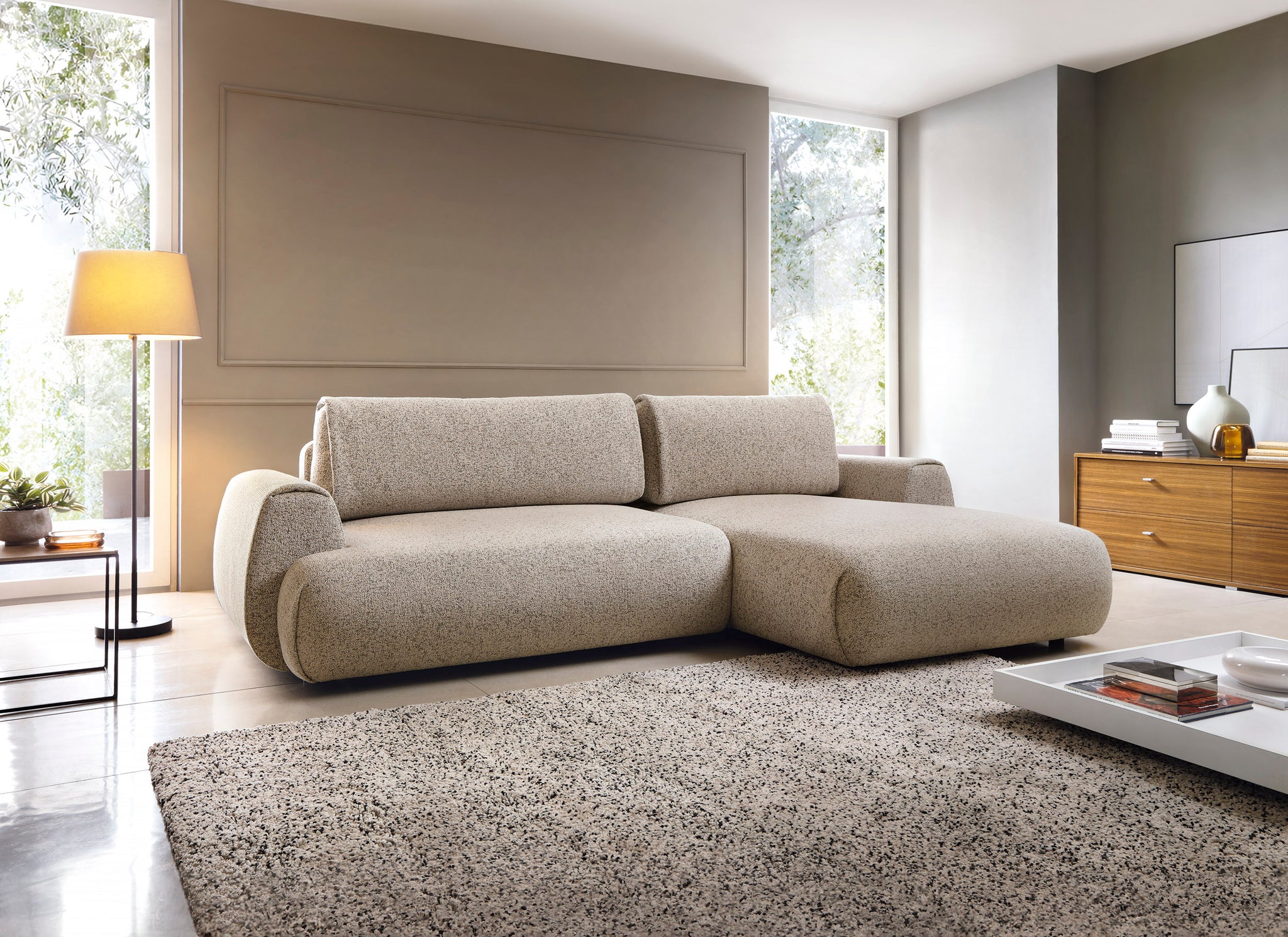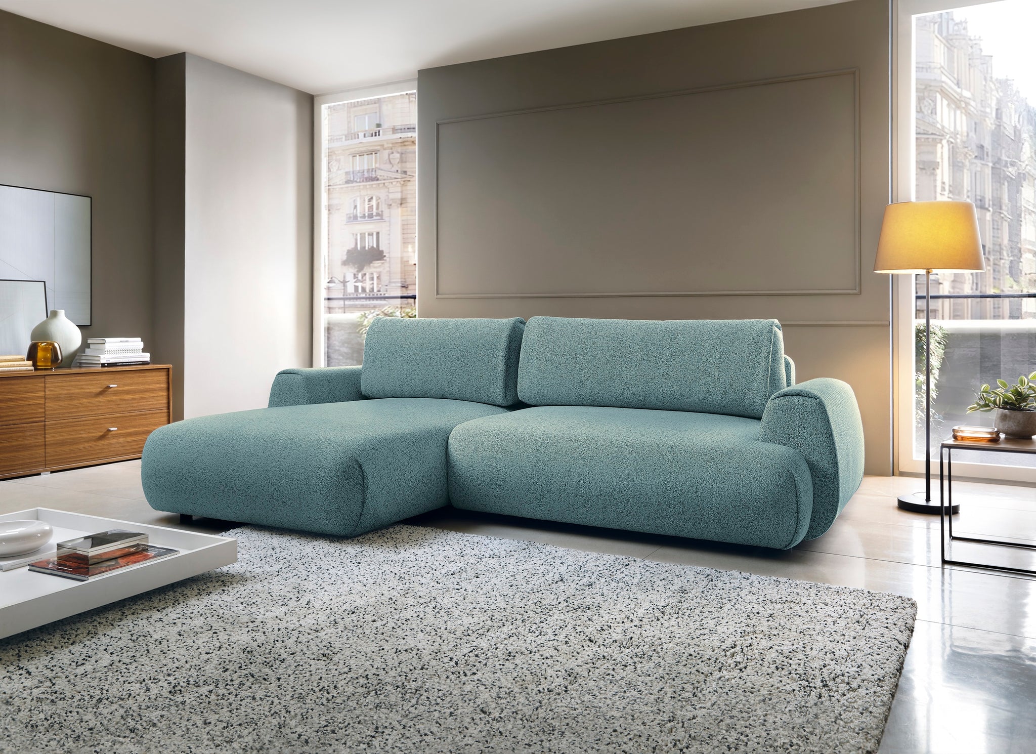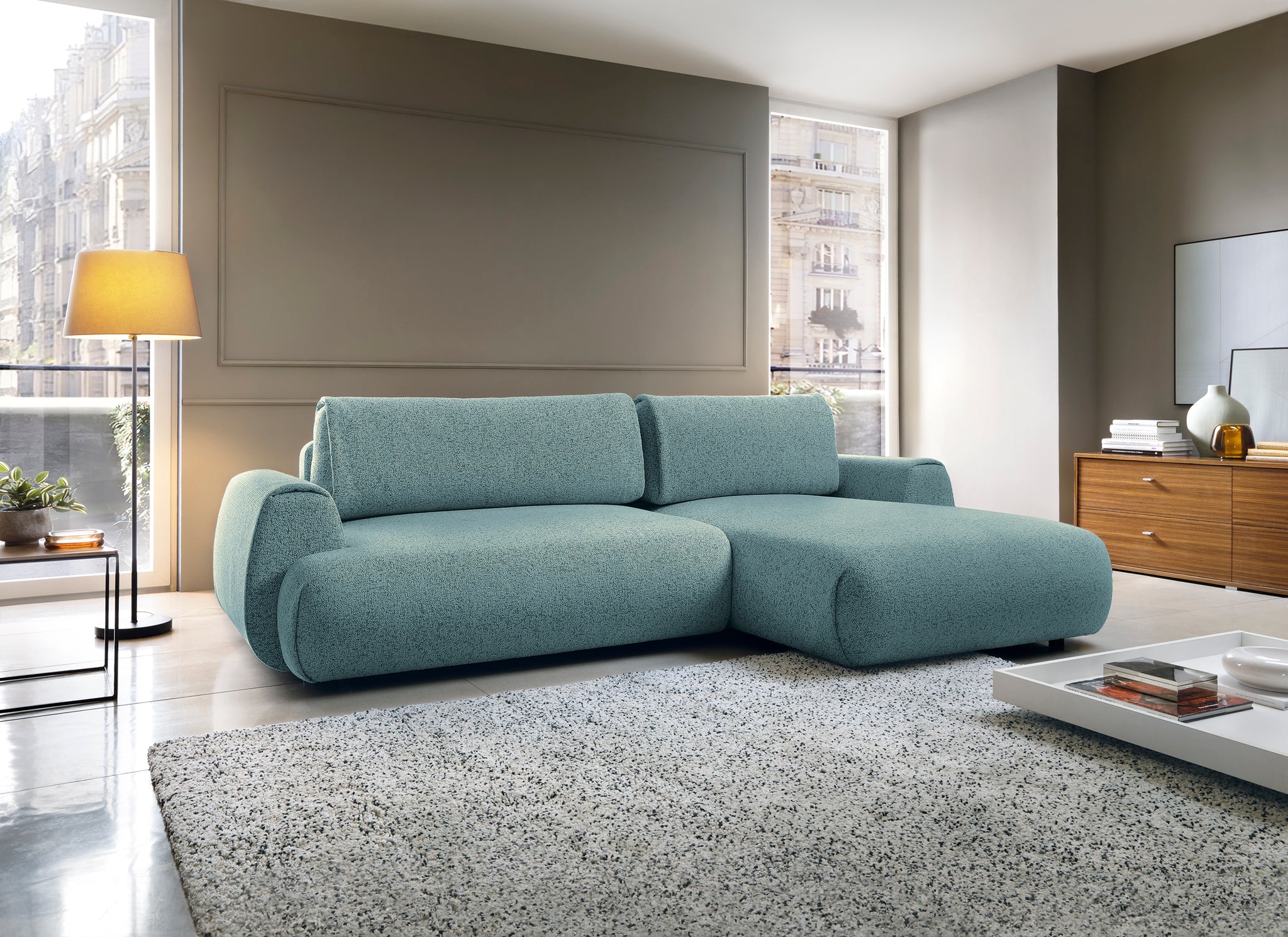 Das Ecksofa POCKET verbindet modernes Design mit hoher Funktionalität und hervorragendem Sitzkomfort. Mit seinen weichen, großzügigen Polstern und der eleganten Form passt dieses Sofa perfekt in moderne Wohnräume. Die breite Recamiere lädt zum Entspannen ein und bietet ausreichend Platz für gemütliche Abende.
